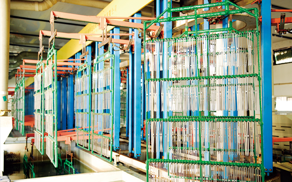 公司現有固定資產6000余萬元,員工300余人,現具有年產噴氣異型筘12萬米,劍桿筘32萬米,噴水筘5萬米,綜框20萬片,鋼片綜2億片,停經片1.5億片, 織軸1.2萬套的生產能力。公司“越泉”商標被評為“中國馳名商標”。公司通過ISO9001 :2015國際質量體系認證,ISO14001:2015國際環(huán)境管理體系認證,ISO45001:2018國際職業(yè)健康安全管理體系認證,噴氣織機用鋼筘和織機用鋁合金綜框獲得“浙江制造”品牌認證,公司擁有自營進出口權,產品暢銷全國并遠銷印度、巴基斯坦、土耳其、埃及、哥倫比亞、意大利等國家和地區(qū)。